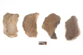 | Description / विवरण | There are n 4 of utilized worked cores and show irregular scar pattern on both dorsal and ventral side. Two have a broken tip. |