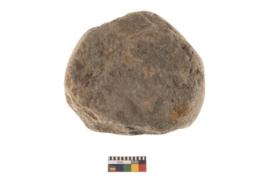 | Description / विवरण | Specimen of a spherical shaped hammer stone with battered surface. |