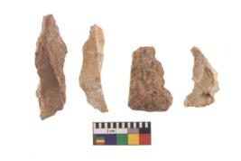 | Description / विवरण | There are n 4 of utilized worked cores and show irregular scar pattern on both dorsal and ventral side. Three are tapering at one end while one has a broken tip. |