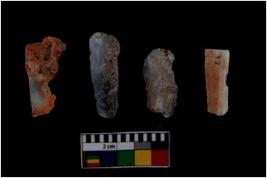 | Description / विवरण | There are n 4 flake cores. All of them are fully fluted flake cores without any trace of crested ridge flakes. Some have blunted edges and some have round edges. Few have flat base. |