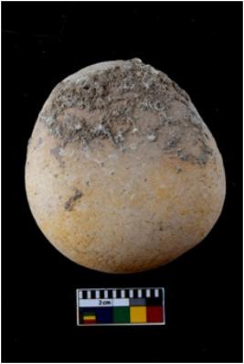 | Description / विवरण | Specimen of a spherical shaped hammer stone with battered surface |