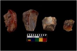 | Description / विवरण | There are n 4 of utilized worked cores and show scar pattern. One has a flat base. |
