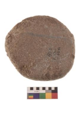 | Description / विवरण | Specimen of an oval shaped rubber stone with circular section and concave end |