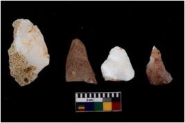 | Description / विवरण | There are n 4 cores. There are multi directional irregular scar pattern on both dorsal and ventral face of the cores. Some have blunted edges and some have round edges. |