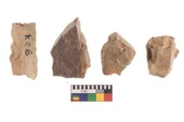 | Description / विवरण | There are n 4 of utilized worked cores and show irregular scar pattern on both dorsal and ventral side. Two are tapering at one end while two have a flat base. |