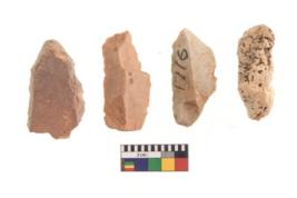 | Description / विवरण | There are n 4 of utilized worked cores and show irregular scar pattern on both dorsal and ventral side. One has a broken tip. |
