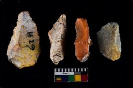 | Description / विवरण | There are n 04 objects; among them two can be identified as blade core, all of them have sharp edges, two are tapering at one end. |