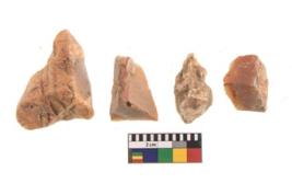 | Description / विवरण | There are n 4 of utilized worked cores and show irregular scar pattern. Two have a flat base. |