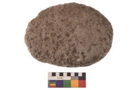 | Description / विवरण | Specimen of a roughly rectangular rubber stone with oval section. It is heaving flat base. |