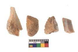 | Description / विवरण | There are n 4 of utilized worked cores and show irregular scar pattern on both dorsal and ventral side. Two are tapering at one end and two have a broken tip. |