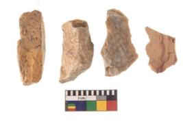 | Description / विवरण | There are n 4 of utilized worked cores and show irregular scar pattern on both dorsal and ventral side. Two are elongated in shape. |