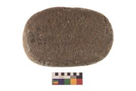 | Description / विवरण | Specimen of a roughly rectangular rubber stone with oval section. It is heaving flat base. |