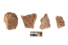 | Description / विवरण | There are n 4 of utilized worked cores and show irregular scar pattern. Three have a flat base. |