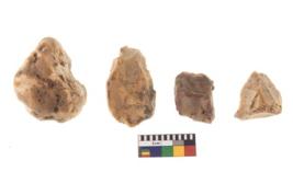 | Description / विवरण | There are n 4 of utilized worked cores and show irregular scar pattern on both dorsal and ventral side. Three are tapering at one end. |