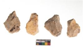 | Description / विवरण | There are n 4 of utilized worked cores and show irregular scar pattern on both dorsal and ventral side. Three have a broken tip. |