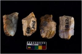 | Description / विवरण | There are n 04 objects; all of them have uneven form, blade removing marks are visible, three are tapering at one end. |