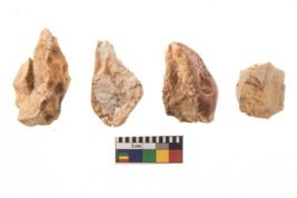 | Description / विवरण | There are n 4 of utilized worked cores and show irregular scar pattern. One has a broken tip while three are tapering at one end. |