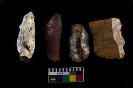 | Description / विवरण | There are n 04 objects; among them one is look like flake core, two are blade core, they have sharp edges. Two are tapering at one end. |