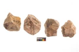 | Description / विवरण | There are n 4 of utilized worked cores and show irregular scar pattern. Two have a broken tip. |