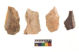| Description / विवरण | There are n 4 of utilized worked cores and show irregular scar pattern. They are tapering at one end. |