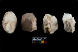 | Description / विवरण | There are n 4 utilized flake cores. There are multidirectional irregular scar pattern on both dorsal and ventral face of the flake cores. One has sharp edges and three have blunted edges. |