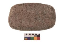 | Description / विवरण | Specimen of an oval shaped rubber stone with rectangular section and concave end |