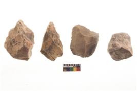 | Description / विवरण | There are n 4 of utilized worked cores and show irregular scar pattern on both dorsal and ventral side. Two have broken tip. |