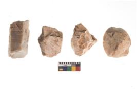 | Description / विवरण | There are n 4 of utilized worked cores and show irregular scar pattern on both dorsal and ventral side. Two are tapering at one end. |