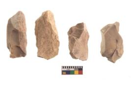 | Description / विवरण | There are n 4 of utilized worked cores and show irregular scar pattern on both dorsal and ventral side. Two have a broken tip. |
