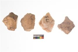 | Description / विवरण | There are n 4 of utilized worked cores and show irregular scar pattern on both dorsal and ventral side. They have sharp edges. |