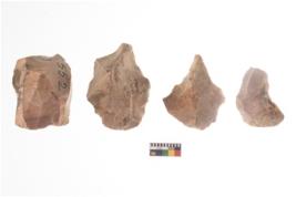 | Description / विवरण | There are n 4 of utilized worked cores and show irregular scar pattern on both dorsal and ventral side. Two have broken tip. |