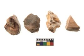| Description / विवरण | There are n 4 of utilized worked cores and show irregular scar pattern. Two are tapering at one end while two have a broken tip. |