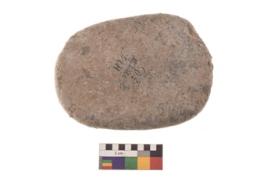 | Description / विवरण | Specimen of an oval shaped rubber stone with rectangular section and concave end |