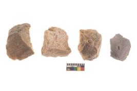 | Description / विवरण | There are n 4 of utilized worked cores and show irregular scar pattern on both dorsal and ventral side. Two have broken tip. |
