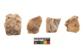 | Description / विवरण | There are n 4 of utilized worked cores and show irregular scar pattern on both dorsal and ventral side. Two have a broken tip. |