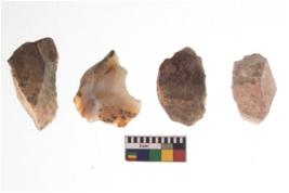 | Description / विवरण | There are n 4 of utilized worked cores and show irregular scar pattern on both dorsal and ventral side. Three have a broken tip. |