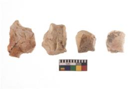 | Description / विवरण | There are n 4 of utilized worked cores and show irregular scar pattern on both dorsal and ventral side. They have a broken tip. |