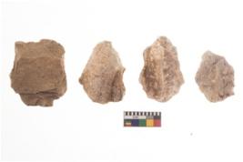 | Description / विवरण | There are n 4 of utilized worked cores and show irregular scar pattern on both dorsal and ventral side. Two are tapering at one end. |