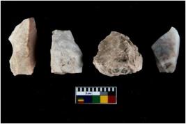 | Description / विवरण | There are n 4 utilized flake cores. There are multidirectional irregular scar pattern on both dorsal and ventral face of the flake cores. One has sharp edges and three have blunted edges. |