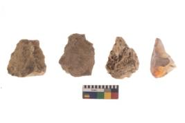 | Description / विवरण | There are n 4 of utilized worked cores and show irregular scar pattern on both dorsal and ventral side. Three are tapering at one end. |