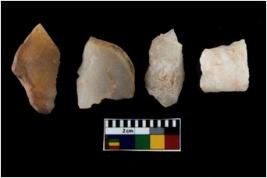 | Description / विवरण | There are n 4 of utilized worked cores and show irregular scar pattern. One has a broken tip while three are tapering at one end. |