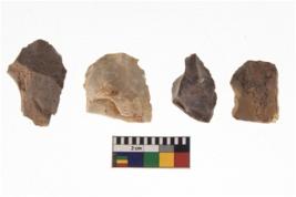 | Description / विवरण | There are n 4 of utilized worked cores and show irregular scar pattern on both dorsal and ventral side. They have sharp edges. |