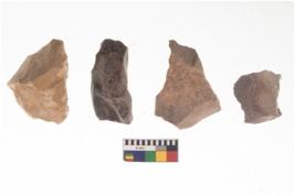 | Description / विवरण | There are n 4 of utilized worked cores and show irregular scar pattern. One has a flat base. |
