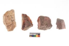 | Description / विवरण | There are n 4 of utilized worked cores and show irregular scar pattern on both dorsal and ventral side. Two have a broken tip. |