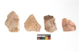 | Description / विवरण | There are n 4 of utilized worked cores and show irregular scar pattern. Three have a flat base. |
