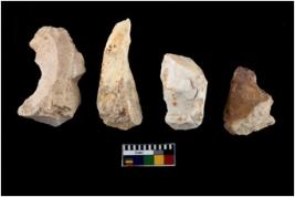 | Description / विवरण | There are n 4 of utilized worked cores and show irregular scar pattern on both dorsal and ventral side. One is elongated in shape. |