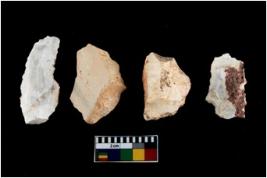 | Description / विवरण | There are n 4 of utilized worked cores and show irregular scar pattern on both dorsal and ventral side. One has a broken tip. |