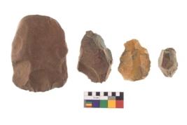 | Description / विवरण | There are n 4 of utilized worked cores and show irregular scar pattern on both dorsal and ventral side. Two have a round base. |