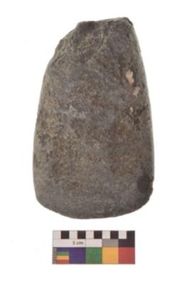 | Description / विवरण | Specimen of triangular shaped Axe with lenticular section and pointed butt. It is under side flat and sharpe edge. |