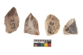 | Description / विवरण | There are n 4 of utilized worked cores and show irregular scar pattern on both dorsal and ventral side. Three are tapering at one end. |